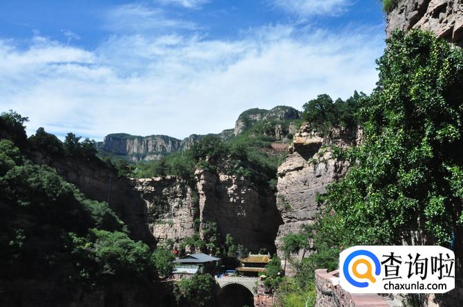 以“三绝”、“一奇”、“十六景”、“七十二景观”名扬国内外,东西双峰对峙于前,南北一岭横亘于后,壁立百丈悬崖。福庆寺修建在谷中崖间,寺内有南阳公主祠。桥楼殿凌空飞跨,是我国三大悬空寺之一。