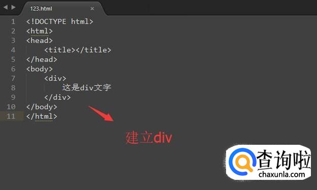 然后我们在html页面中加入div标签,并且在div标签中加入一些文字,如下图所示