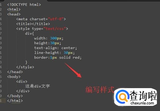 接下来我们给div标签编写CSS样式,如下图所示,这里主要是text-align和line-height两个属性,如下图所示