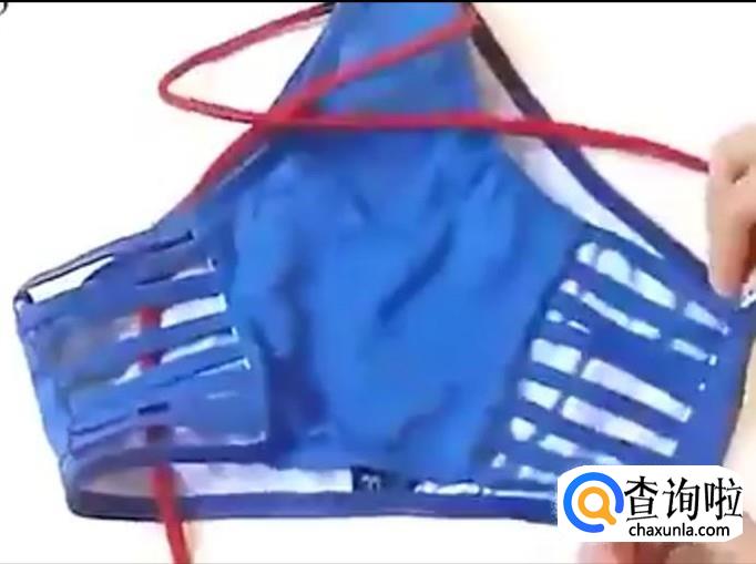 最后把两端绳子在后背打结,或者把两端绳头缝制在三角内裤的两角。如图所示。
