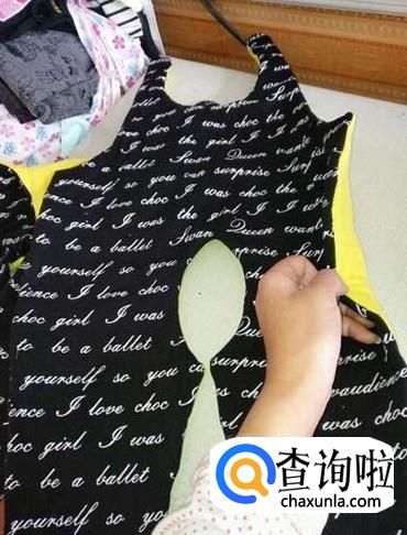 在花色布料合适的位置对折,然后画连体裤一半的造型,再沿着白线剪开,同样颜色的布需要剪两块同样的,因为分为前后,图中画线的部位不需要剪的,如果家里有宝宝的连体衣,可以用来比对路线,再进行修剪。线的下半部分是需要剪开的,参照下条信息的图的样子剪开就可以了。