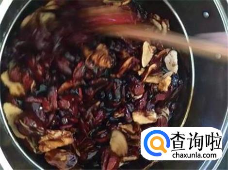 将所有食材放进锅里,小火继续熬制,一定要不停的搅动让其受热均匀。