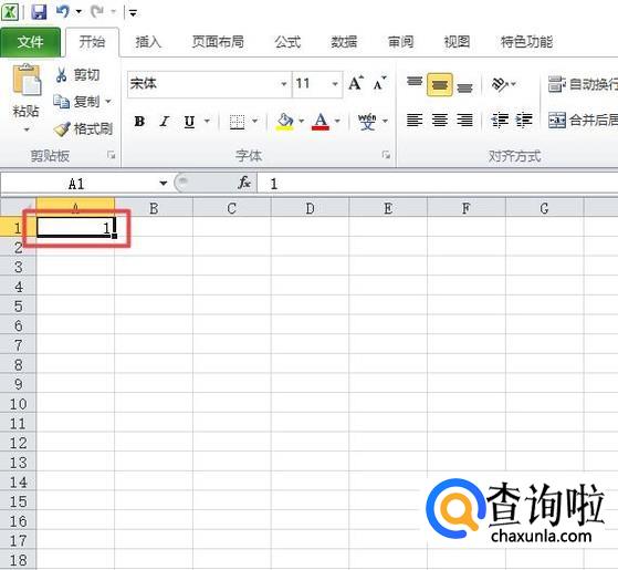 之后我们在单元格中输入1,如图所示;