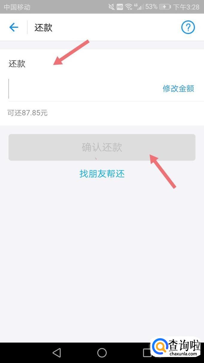 最后就会进行还款,输入你下个月全部的还款金额,如果再下个月还有分期,就还完了这个月再还下个月的。