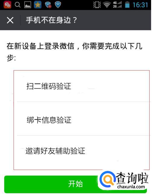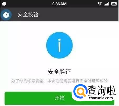 接着,我们会跳转到安全验证的界面。第一次在新手机上登录微信都需要进行安全验证,我们点击“开始”就可以了。