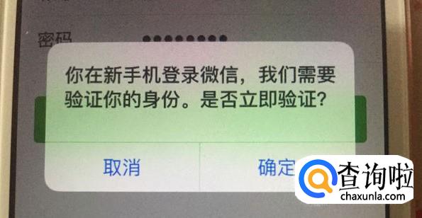 扫描二维码成功以后,我们就要在新手机上的微信进行确认以后,旧手机上会出现验证信息,点击确定即验证成功。