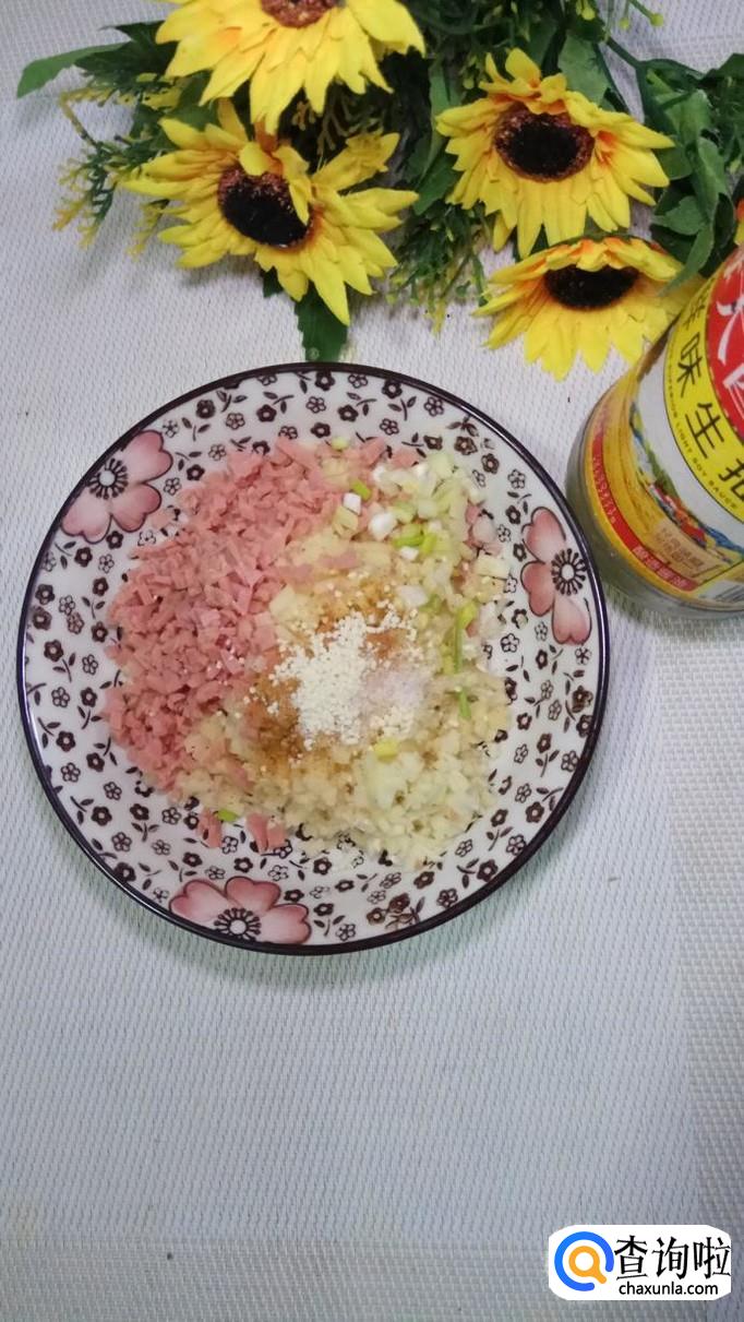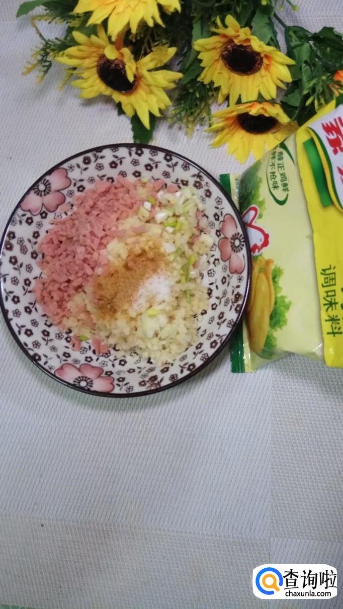 再放入适量生抽,少许小麦淀粉,将它们搅拌均匀之后,做成馅儿备用。