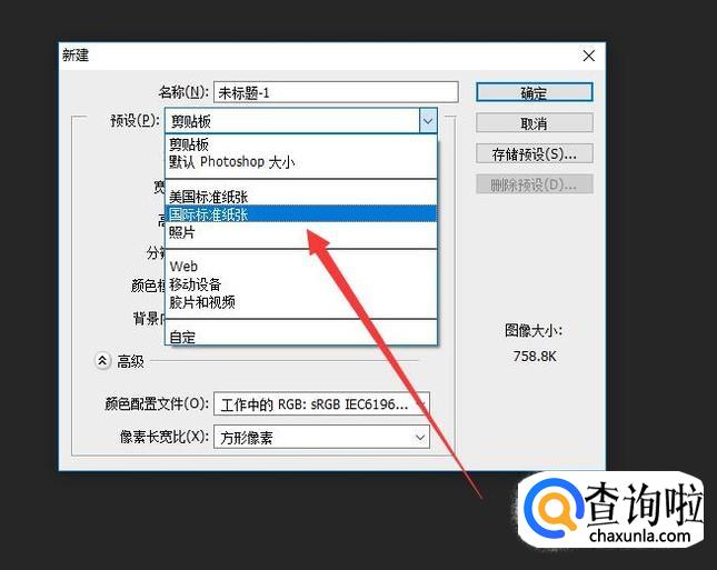 打开之后,点击图示位置选择“国际标准纸张”,进入下一页面,如图所示。