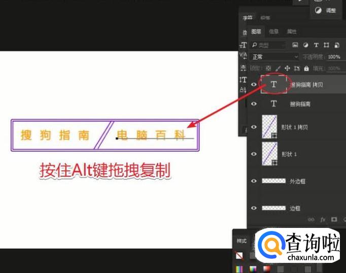 选择当前文字图层,通过按住Alt键拖拉复制新的文本图层,双击文本层的缩略图更改文本内容。
