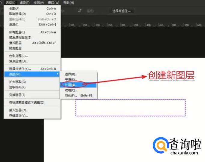 通过执行:选择--修改--扩展工具,为当前选区进行扩展操作。
