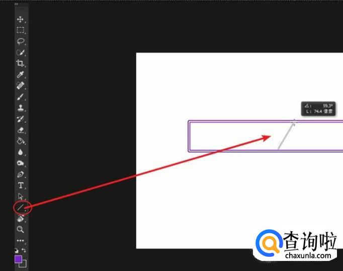 在形状工具下选择“线条工具”,如下图区域拉出斜线。