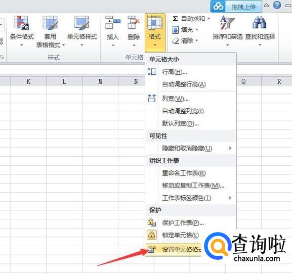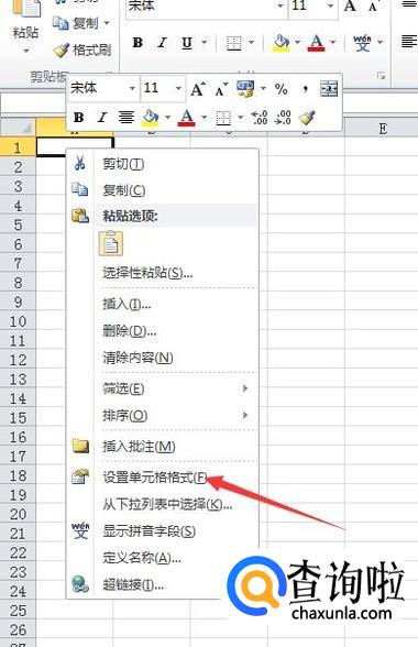 在弹出的下拉列表中找到[设置单元格格式]