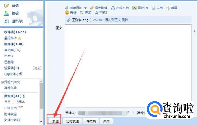 最后,我们在邮箱的最下方点击”发送“,工资条就群发出去了。