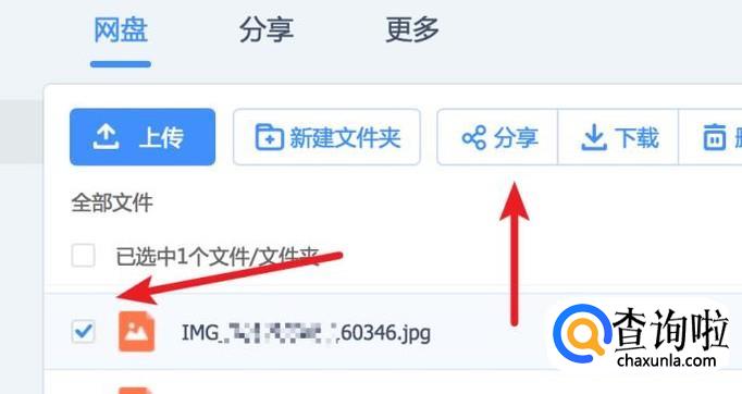 找到文件后,点击选中这个文件,在上方菜单上就会有一个‘分享’的按钮了,点击它。