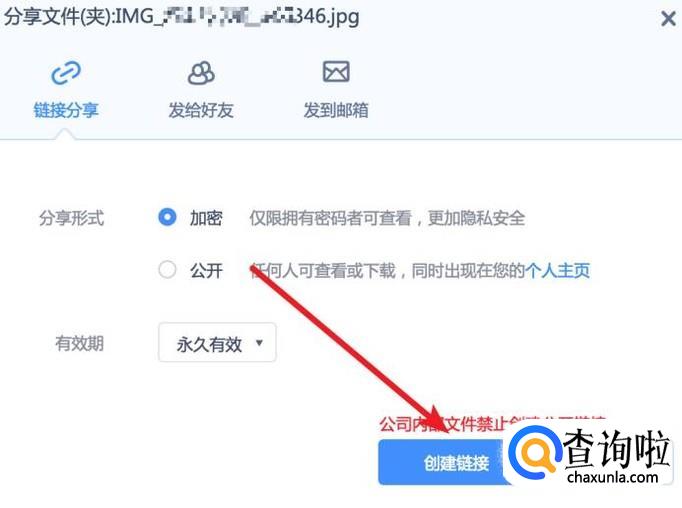 弹出分享窗口,点击下方的‘创建链接’。