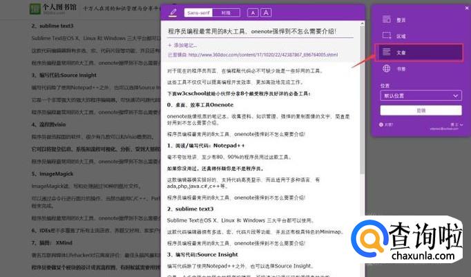 随便打开一个网页,在OneNote Clipper悬浮窗中选择文章,稍等片刻,就可以看到左侧被取出的网页主体内容预览。