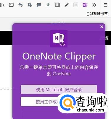 安装完毕后,右上角的工具条中出现了OneNote笔记本图标。点击,打开OneNote Clipper悬浮窗。
