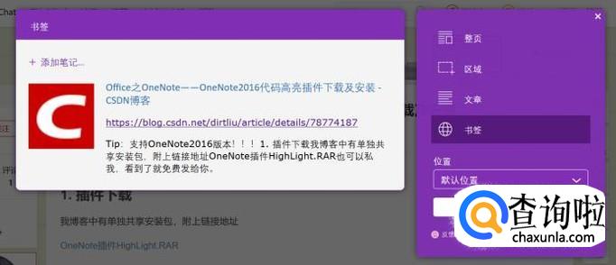 如果点击OneNote Clipper悬浮窗中的书签,则剪辑内容非常简略,只有标题,Title图片和连接。