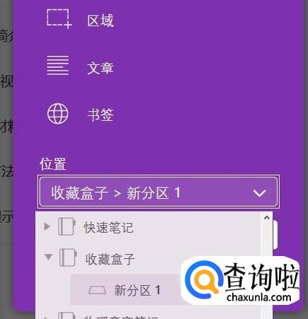 在选择好剪辑类型并剪辑完毕后,点击下方的位置,选择自己OneNote笔记本中的笔记本和分区。