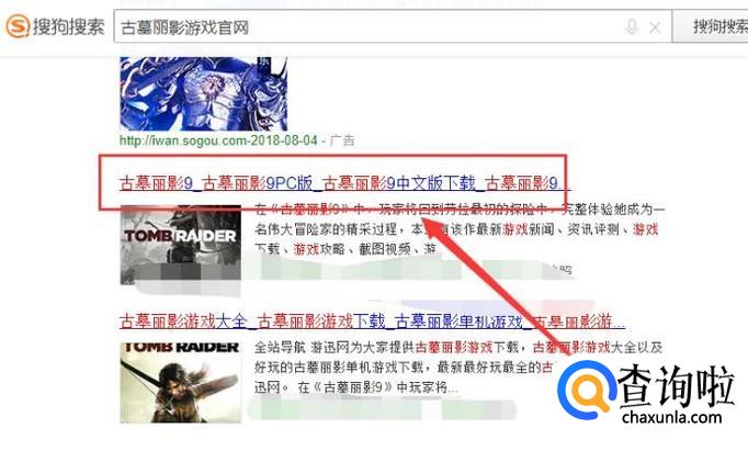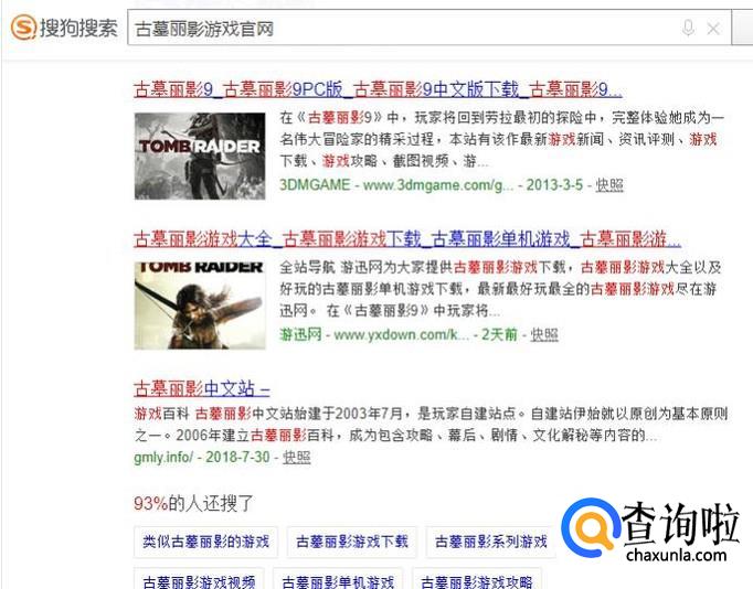 进入之后,搜索“古墓丽影游戏”,进入搜索结果页面,如图所示。