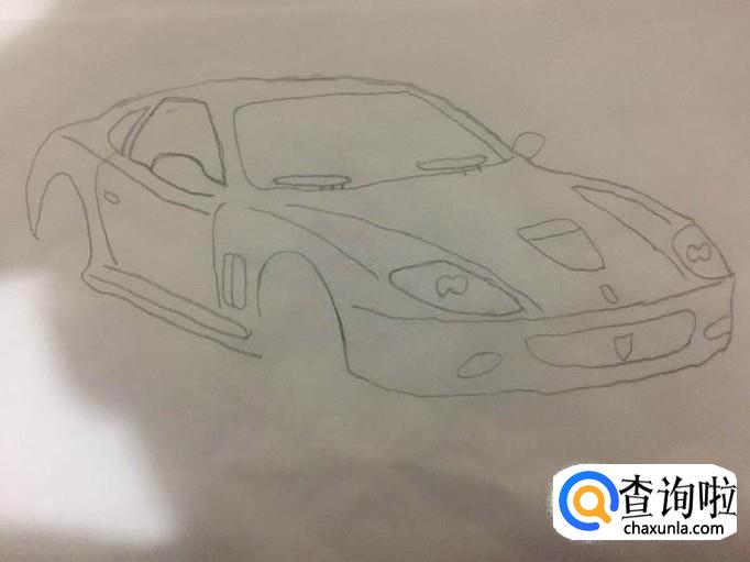 接着画出跑车的引擎盖,如下图所示。画这部分时候,只要用铅笔轻轻勾勒出一些线条就可以了。