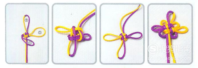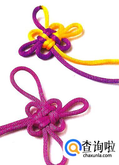 最后仿照上面的方法再做一次,调整拉紧,根据线的走向把小线圈拉出,一个中国结就做好了。