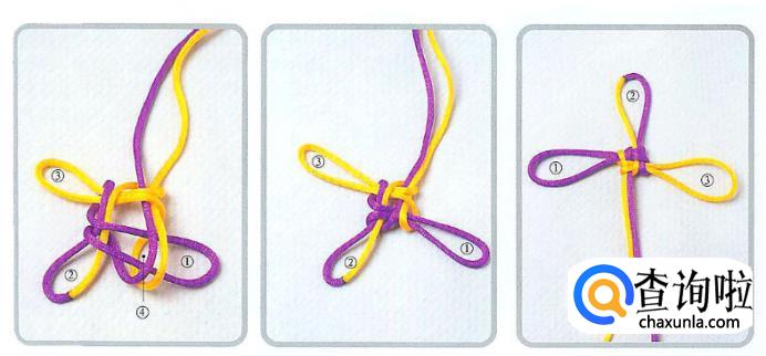 首先拿出一根彩线,按照如图所示的样子做出圈1.2.3,然后把尾线绕出圈4,压住圈3。