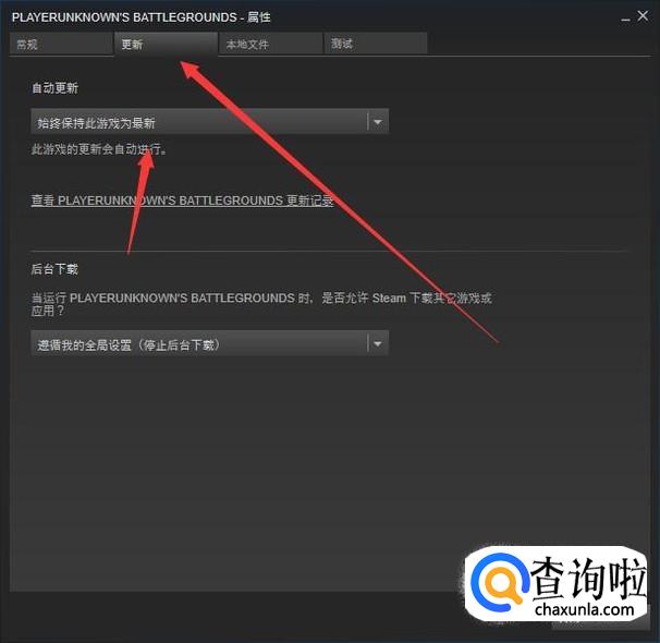 然后在弹出的窗口中点击“更新”然后在下方自动更新中选择始终保持此游戏为最新。这样设置之后当你联网后游戏就会自动更新啦。