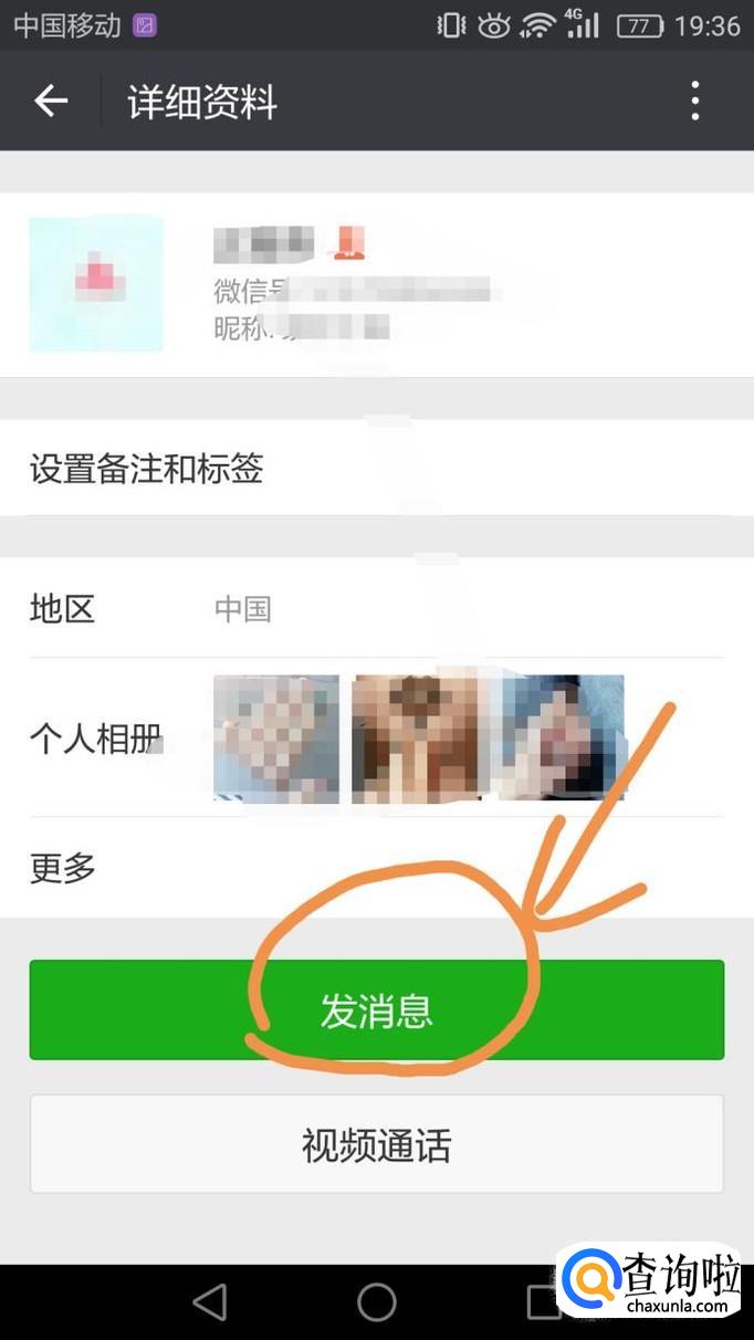 进入好友页面,选择发送消息。如图所示。