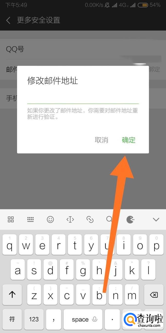 最后输入需要绑定的邮箱地址,点击确定即可完成绑定。