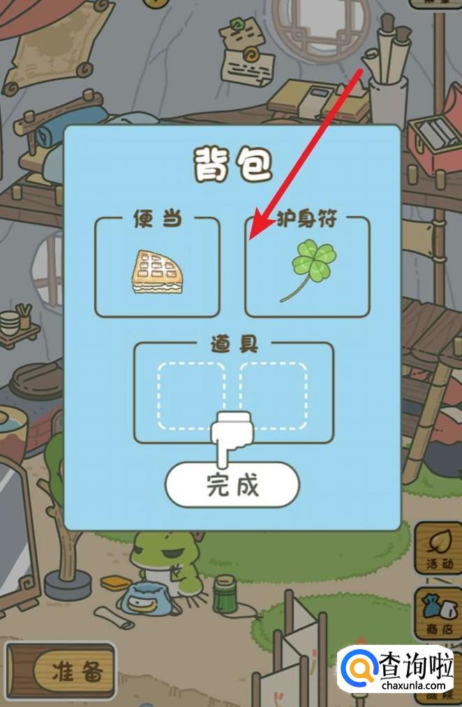 物品购买好后,来到房子,点击‘准备’按钮,就可以为青蛙准备出行的行装了。