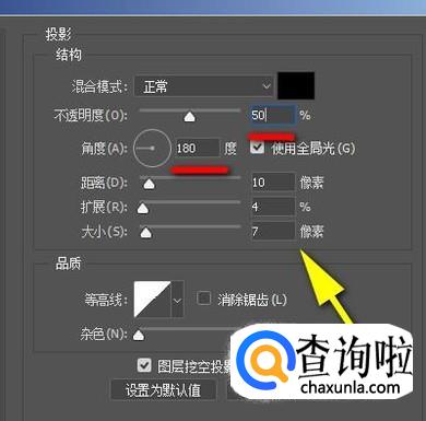 “大小”设置为7像素;