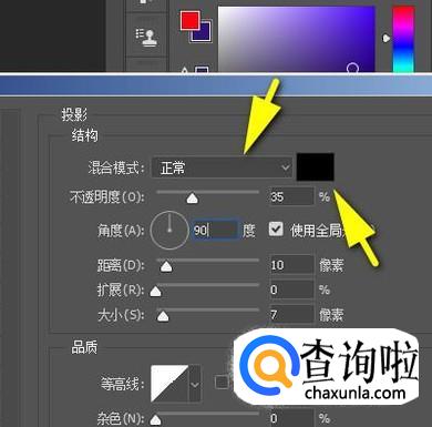 再设置投影颜色为黑色。