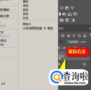 鼠标再移到图层面板,鼠标放在文字层这里,右击,弹出一列表。