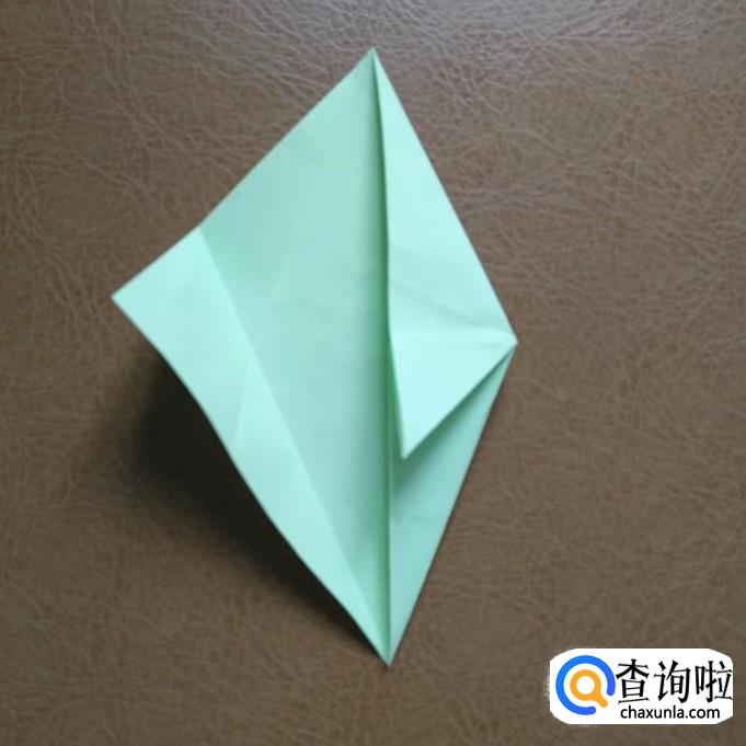 把右侧沿折痕捏折后向下折。