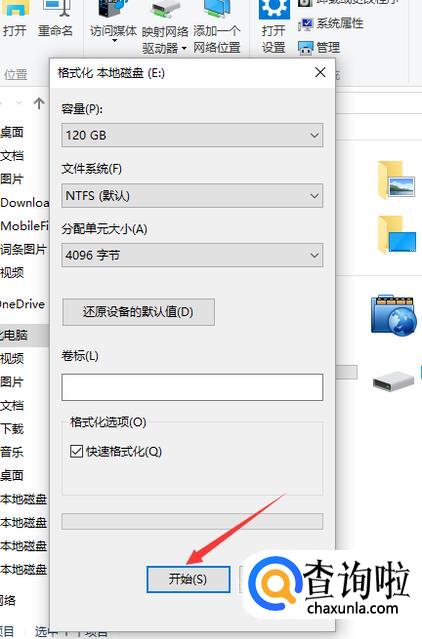 进入格式化界面的时候,点击下面的开始,然后等待几分钟。