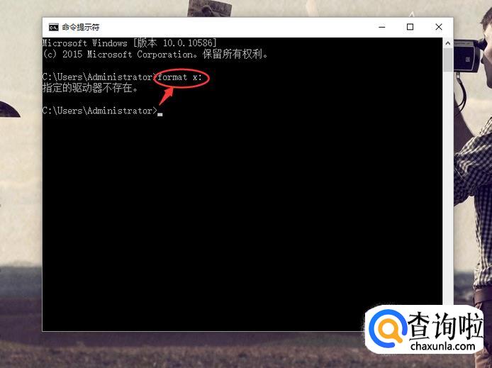 输入格式化命令format x(x是你需要格式化的硬盘字母):