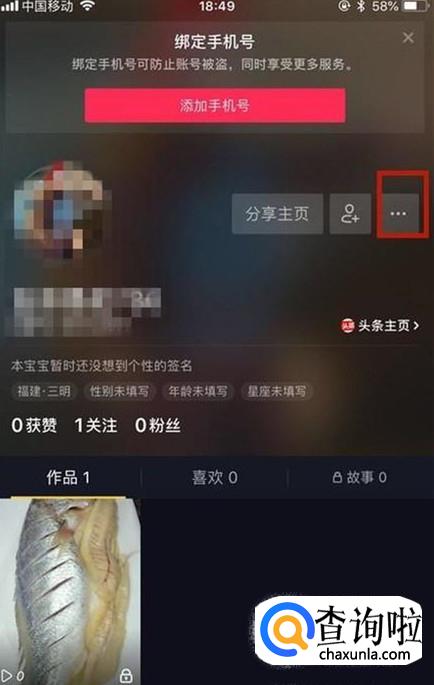 然后我们再打开抖音,进入首页,点击“我”,然后再点击个人主页右边的三个点,如图所示。