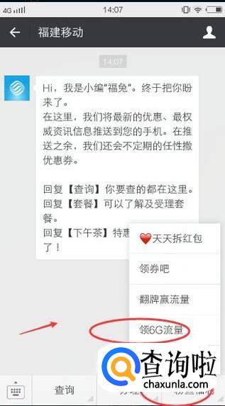 然后在弹出的上拉菜单中选择【领6G流量】,如下图所示: