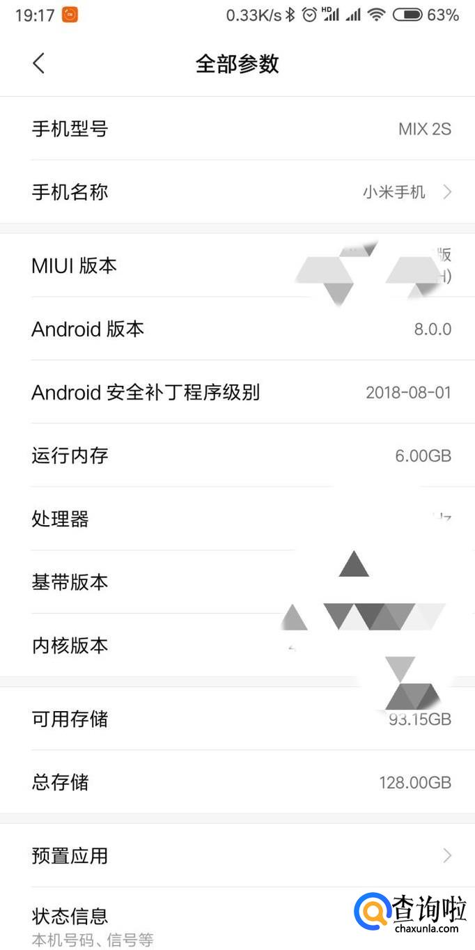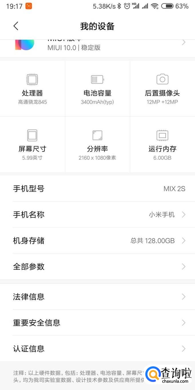 进入手机设置以后就可以看到手机中的参数。想要了解安卓系统继续点击全部参数。