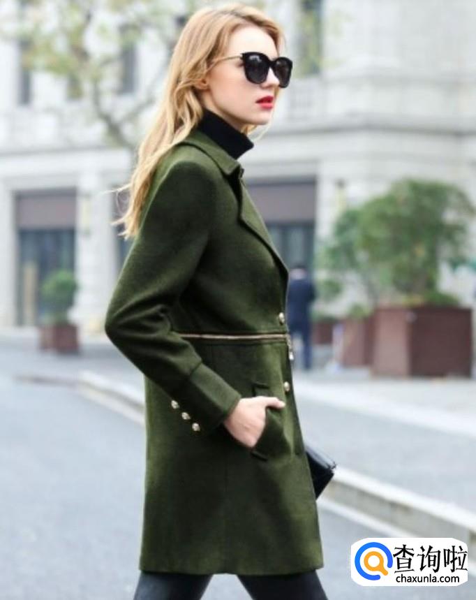 军绿色大衣里面配一件黑色的高领毛衣,让整个色调看起来非常的沉稳,但是又不会单调,所以整个人看起来非常有气质。