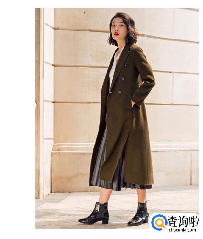 军绿色大衣里面搭配一件小V的衬衫,下面搭配一件金丝绒的百褶裙,整个人看起来非常的俏皮,但是又会有一丝丝的小成熟在里面。