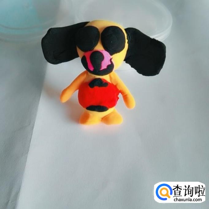 再用黄色超轻粘土做成狗狗的身子,红色的做成狗狗的嘴嘴和鼻子,这个有些没做好,下次改好一点。