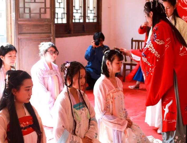 古代女子的成年礼叫做笄礼。笄礼,是指汉民族女孩的成人礼,古代嘉礼的一种。俗称“上头”、“上头礼”。笄,即簪子。自周代起,规定贵族女子在订婚(许嫁)以后出嫁之前行笄礼。一般在十五岁举行,如果一直待嫁未许人,则年至二十也行笄礼。冠(笄)之礼是我国汉民族传统的成人仪礼,是汉民族重要的人文遗产,它在历史上,对于个体成员成长的激励和鼓舞作用非常之大。