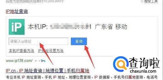 再到网络上搜索IP归属地,在出现的IP地址查询的框中输入IP地址,点击查询,下方就显示出位置了。
