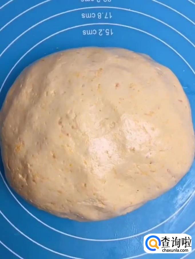 然后将南瓜泥和糯米粉搅拌均匀,搓揉成团,如下图所示。小贴士:大家在搓揉的过程中如果比较湿,可以适量的添加一些糯米粉继续搓揉就可以了。