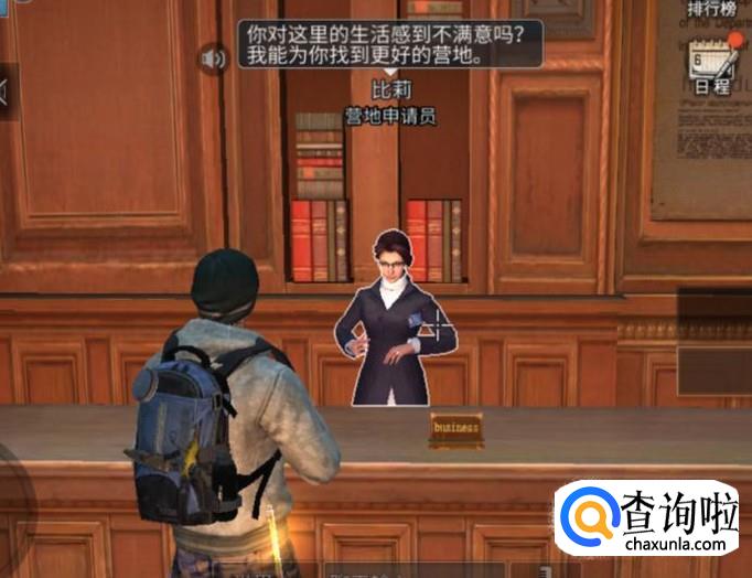 在这里有个NPC比莉,这是营地申请员,在这里可以申请和创建营地。