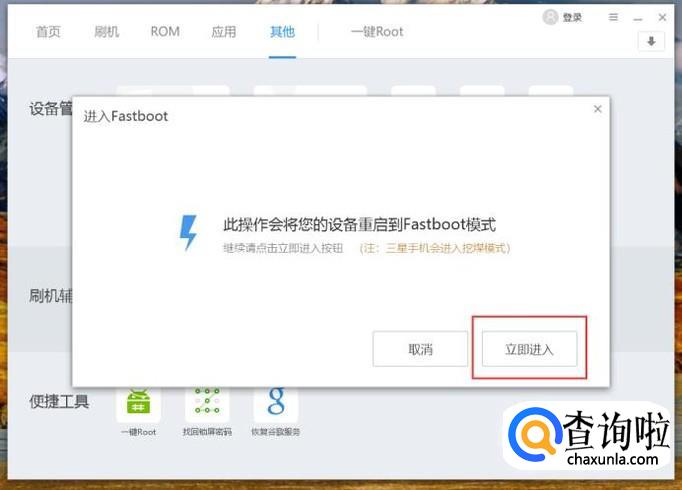 最后,在软件弹出的对话框中,点击“立即进入”按钮即可进入Fastboot模式。