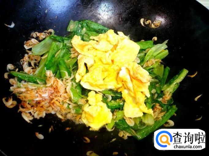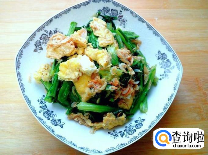 油麦菜 150克,虾皮 适量,鸡蛋 2个。