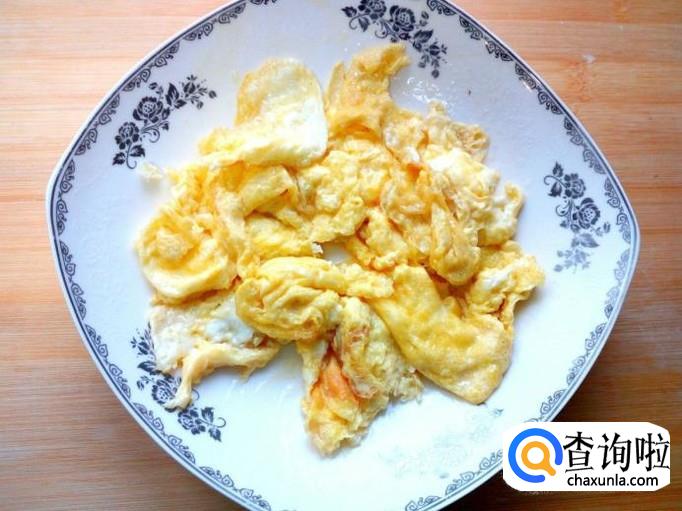 用锅把鸡蛋炒出来,炒至八分熟,盛出备用。